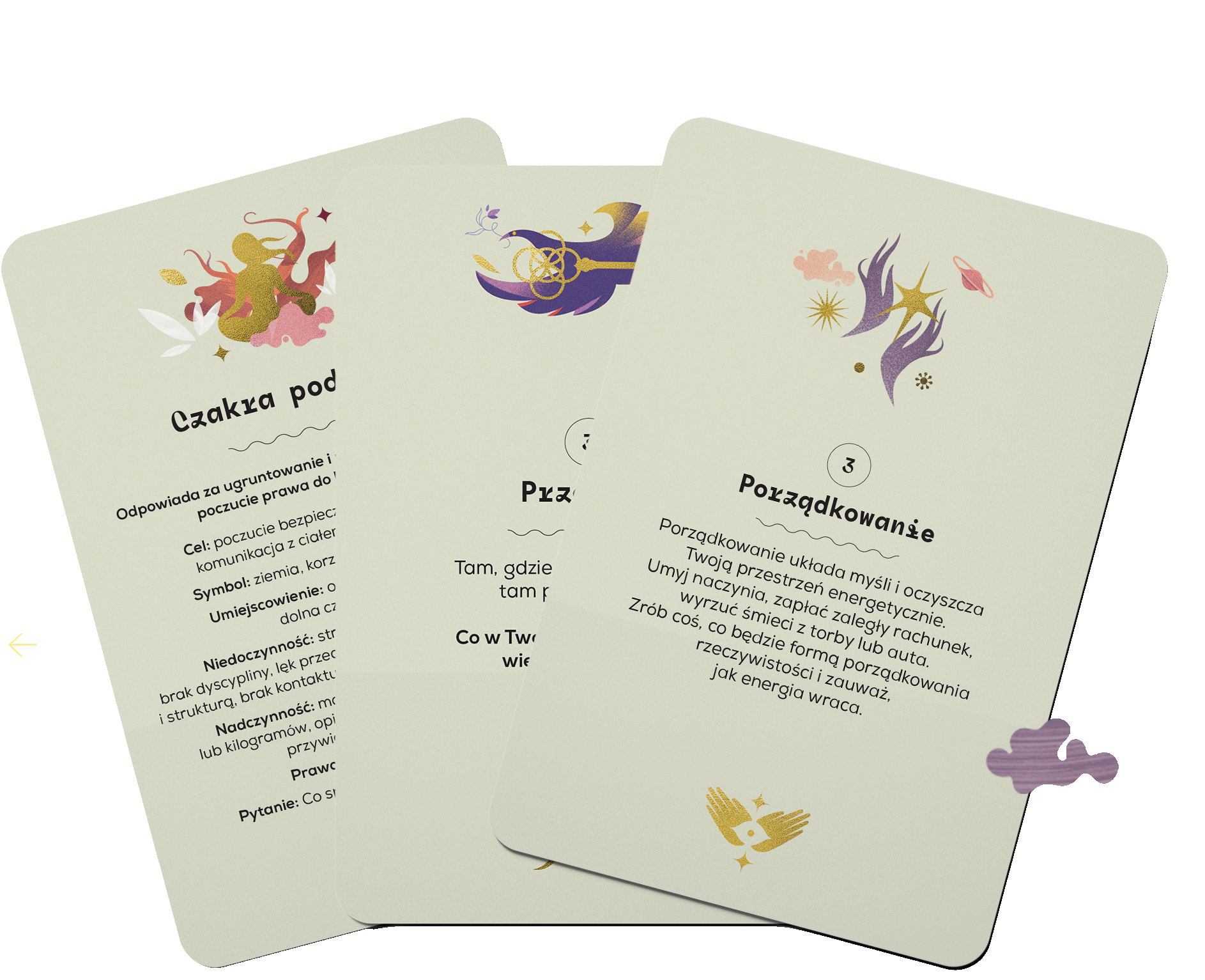 Naszą intencją jest, aby karty odkrywały przed Tobą to, co zapisane w Twoim Polu i Twojej podświadomości oraz aby stały się kluczem do osobistej przemiany. Zmieniając siebie, zmieniasz otaczającą Cię rzeczywistość. Wierzymy, że gra pomoże w odnalezieniu odpowiedzi, których poszukujesz.